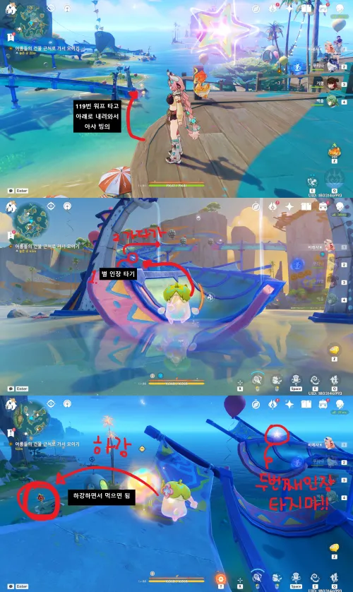 왼쪽 기준 4번째 빨간색 구슬을 파란색으로 변형(파란색3개 제거)-자동으로 무색 3개 제거-왼쪽 기준 3번째 초록샏 구슬을 빨간색으로 변형(빨간색 3개 제거)-왼쩍 기준 4번째 파란색 구슬을 노란색으로 변형(노란색 구슬 3개 제거)-자동으로 무색 구슬 2개 제거-왼쪽 기준 3번쩨 노란색 구슬을 주황색으로 변형(주황색 구슬 3개 제거) |