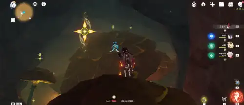 노란 꽃이 보이는 쪽에 버섯몬이랑 같이 있습니다. 날아서 바로 위로 가서 렌즈 활성화시 아란나라가 보이지 않으니 아래 츄츄족 잡고 올라가세요... |