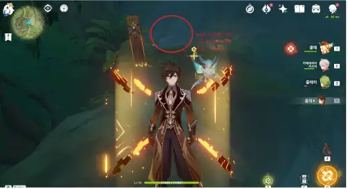 @458 선령에서 직진하면 동굴 끝자락에 천장에 풀원소 기둥 헤제 |