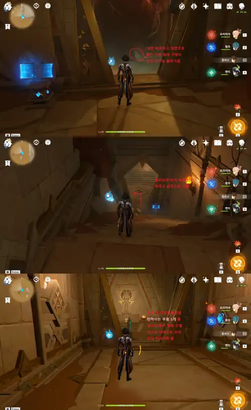 움짤 참조. 위를 보면서 연타하는 걸 권장함. 케이아 등의 장신남캐를 사용하면 더 편할듯 |