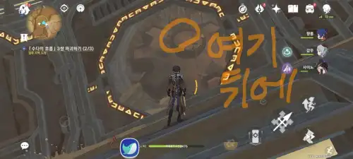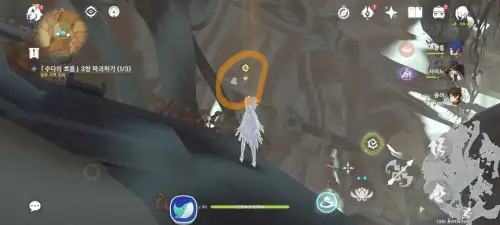 보물사냥단 있는 텐트(움막아님 작은거)를 바라보고 불기둥에서 9시방향으로 이동하면 바로 보이는 바위를 끼고 돌면 아래쪽에 있음 |