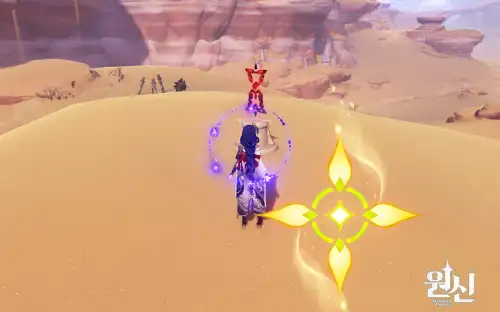 월드 임무 [황금빛 꿈-모래바다의 행방불명] 진행하면서 오게 되는 장소. 바람원소로 모래더미 날리면 획득 가능! |