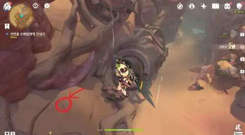 사막에 있는 마법수정석이 있는 수정광산 위치 알려줌. |