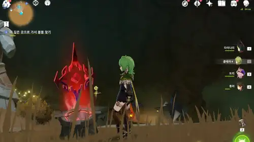 투명횃불 2개 그냥횃불2개 밝혀야함. 날아다니는 털복숭이가 안보이면 재접 |