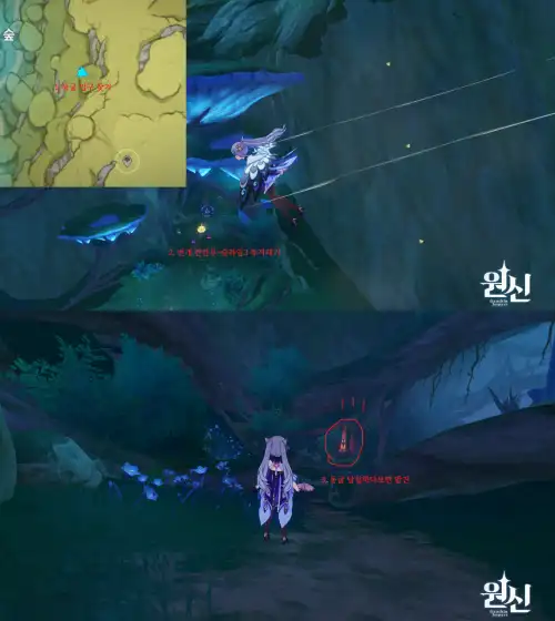 풀캐 아니어도 비경 앞에 있는 풀 씨앗 소환 후 화살캐로 강공격해도 비석은 활성화가 됩니다. 비경 뒤쪽의 비석은 풀 씨앗으로 돌을 맞춰야(이름이 생각이 안나네요;; 가운데에 초록색인 그 돌입니다.) 비석이 보입니다. |