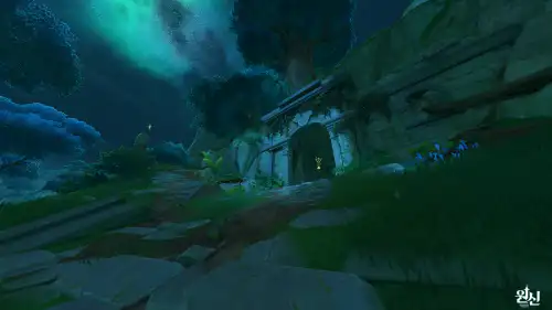 지하 계곡 남동쪽 작은 폭포 한칸 내려가서 풀씨앗 먹고 버섯점프대 밟고 과녁 맞추기 |
