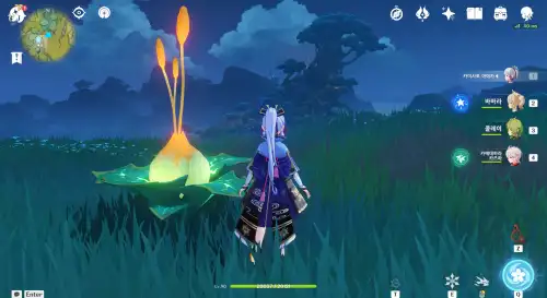 위치는 나무 맨 아래, 바루나 가타 잎사귀 방향 돌려놓는 아란판두 퀘 있는 곳. 눈동자 옆 언덕 가장 높은곳까지 가서 장신캐릭으로 활강하면 획득 가능. 종려 기둥, 카즈하 이단점프 이런거 필요없음. |