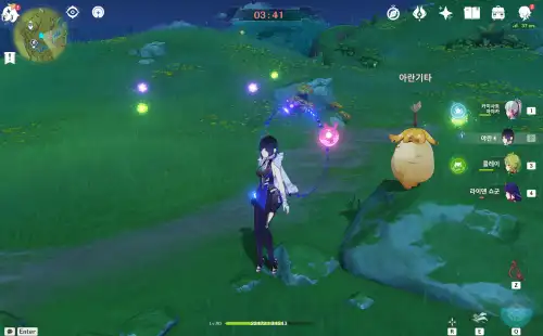 반짝이는 원소구슬 위치에 나무상자가 생김. 풀원소구슬 위치에 해당하는 상자 3개 부스면 클리어 |