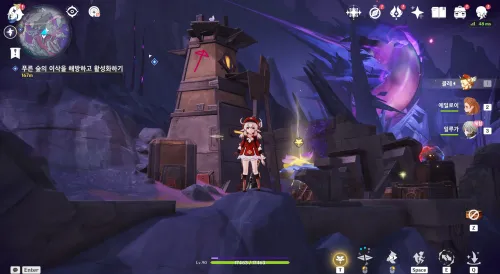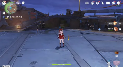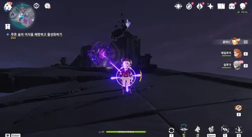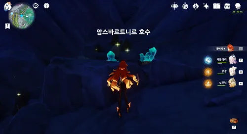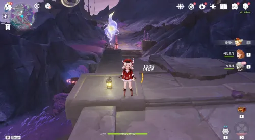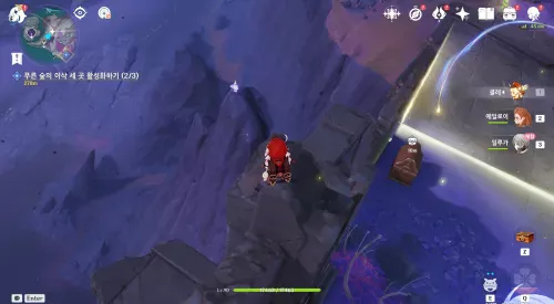 나무 옆에서 알베도 E설치> 꽃 타고 달리아 E 설치> 점프 타기전 카즈하 변경후 올라가면 공중E쓰고 활강 가능 |
