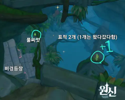 12번 워프 설명대로 물 빼고 쭉 쭉 쭉 들어오고나서 표적맞추면 (2개) 비경이 갑자기 등장해여 사진참고 |