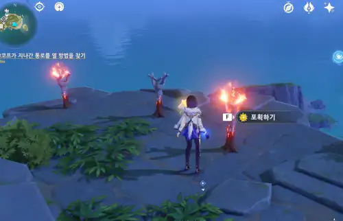 유적에서 들어갔던 물웅덩이 빠져나올 때 위치 기억했다가 거기로 들어가면 배 타고 안 가도 됩니다 |