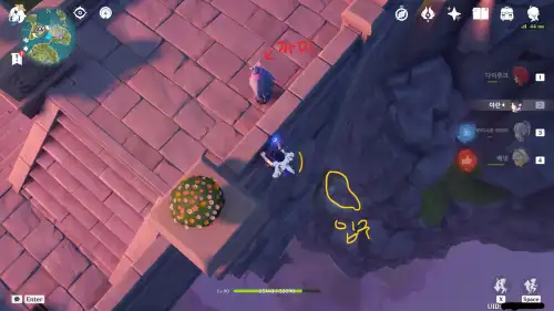 환영동물 기믹맞고 중간쯤 절벽에 여우있음 |