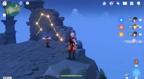 위에서부터 아래로 별자리 대조하여 순서대로 횃불 켜기 |