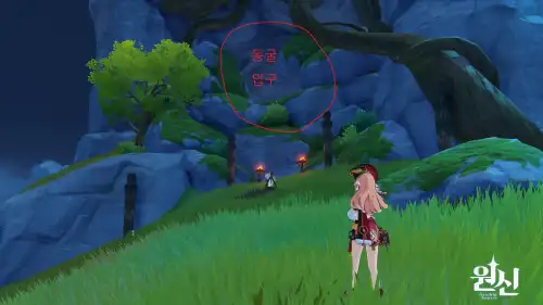 화염기둥이랑 나무 정면으로 겹쳐봤을때 오른쪽 언덕 벽에 붙어있음 |