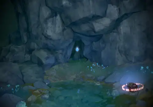 저 위치에서 제일 밑으로 내려와서 안쪽에 동굴? 같은 곳에 있어요 |