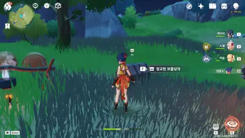 옆의 바위 무더기 부수고 들어오는게 편함. 상자 뒤에 서면 해금됨 |