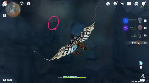 근처 3마리 선령 모으면 윈드 필드 생기고 그거 타면 나선비경 입구(하늘에 떠있는 보라색 원)로 들어가는데 입구로 들어가지는 말고 윈드필드 상승 중간에 내려서 상자로 활강하면 편함 |