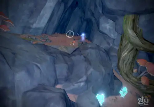 동굴 안에서 절벽 위쪽으로 올라오세요 |