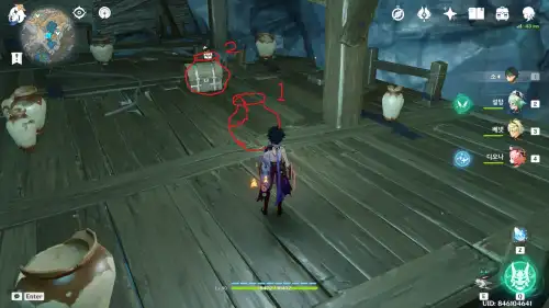 14번 워프 타고 오기, 감우나 미코 이용해서 몹 3마리 잡으면됨 |