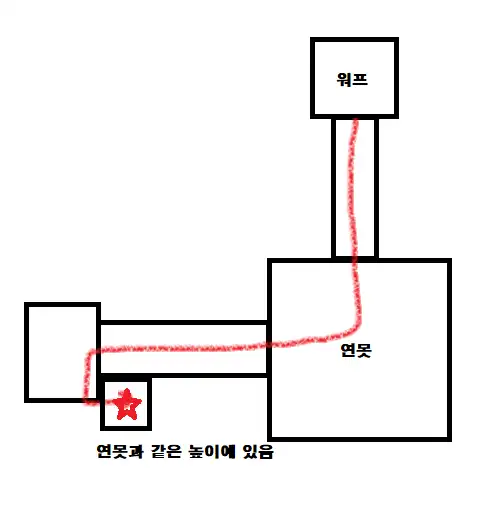 위에 버섯 있는 부서진 벽 넘으면 됨 |