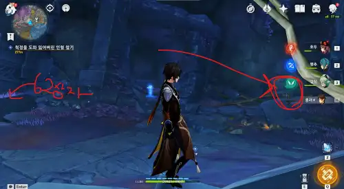 밧줄 끝에서 종려나 바위행자로 밧줄에 e스킬 하나 깔아두고 활강하는게 제일 편함 (그냥 뛰다 2번 다시온 1인) |