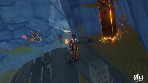 9번 워프 포인트에서 출발하면 안되고 102번 진귀한 상자 여는 바위 기둥 근처의 보라색 벽을 순광으로 열면 됨 |