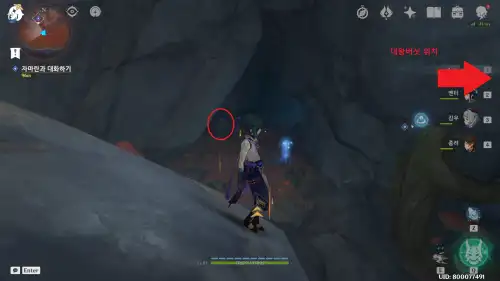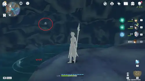 9번에서 출발해서 물웅덩이 끝나는 지점에서 등반해서 위로 올라가면 있음 |