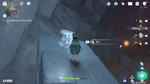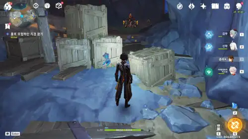 빛나는 바위에다 바위원소창조물 하면 공진되서 이 위치의 바위원소 그림 그려져있는 바위 깨짐. 그럼 상자 나타난 |