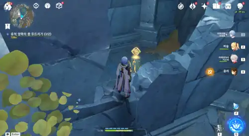 밑으로 가지말고 위 쳐다보면 입자들 보일거임 그거 보면서 크레인 위쪽으로 쭉 올라가면됨 |