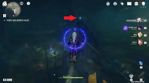 빨간색 표시가 시작 위치고 선령이 목조기둥타고 계속 올라가면서 이동함 |