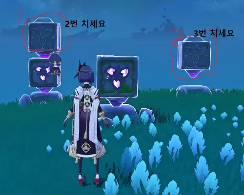 광물 깨고 하나 동쪽으로 고정시킨 다음 씨앗 먹고 나머지 3개 맞춰주면 편함 얼음 슬라임 조심 |