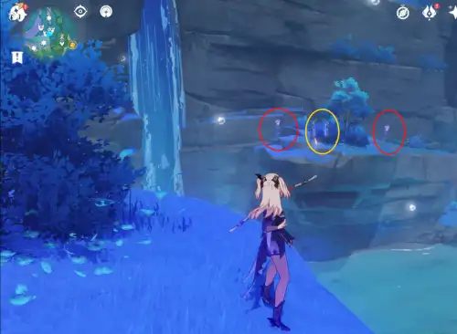 왼쪽 기준 3번 2번치고 2번 2번 치고 종려 암주로 전체 다 치니까 상자 나옴. 종려 없으신 분들은 리사 궁 등 한 번에 다 때릴 수 있는 스킬로 치면 될듯함 |