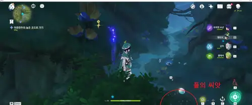 1. 워프타고 앞으로 가서 위에 나무덩쿨 올라가 씨앗1개 파괴 2. 그 밑에 씨앗 1개 파괴 3. 해제된 풀 원소비석 활성화 후 물이 빠지면 뒤쪽 하단에 마지막 씨앗 파괴 4. 이후 나오는 몬스터 잡고 중앙에 정화하기 누르면 됩니다 |