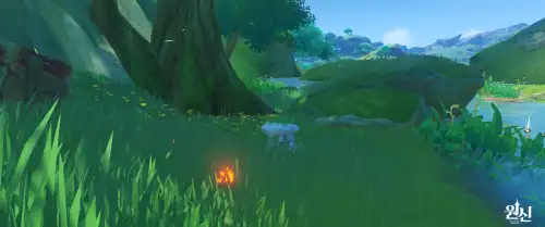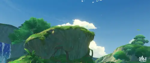 근처에 있는 "사라진 풀의 신의 눈동자@58" 앞쪽으로 쭉 들어가서 버섯타고 점프하면 됨 |