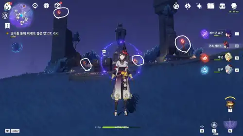 상야의 사당 등불 아래 바위에 앉기 상호작용이 안 되는 버그가 있음. 재접속 시 해결 |