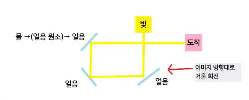 빛 쏘는거 바로 앞에 있는거랑 그거의 바로 오른쪽에 있는거 2개만 물로 바꾸고 빛이 그 2개 통과하게 방향 조절하면 됨. 오른쪽 2개는 필요없음 |