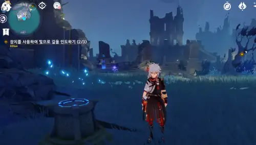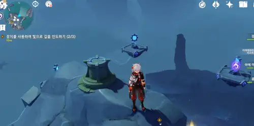 밤에 기운먹고 낮전환해서 내려가서 기둥활성화 , 노란장막 사라지면 오른쪽으로 돌아가서 노란기운 먹고 왼쪽으로 돌아가면 기둥 활성화 가능 . |
