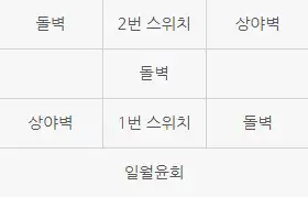 제일 가까운 돌벽부터 제일 먼 돌벽까지 대각선이 되면 됩니다. 그 다음에 상야로 만들면 X자가 되면서 클리어 |