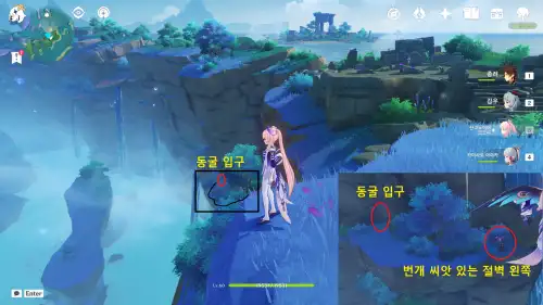 워프포인트에서 바로 보이는 동굴안에 있음 |