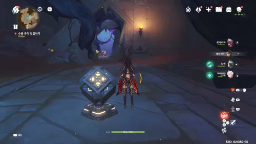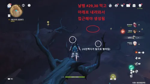연주 안한 상태는 꽃 주위에 초록색 원으로 특수효과 있습니다. 낣은하프소지시 z키 버튼도 일반적인 상태와 다른 음표가 움직는 상태가 됩니다. |