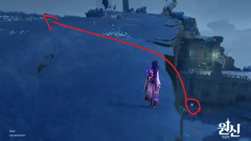번개기둥 기준으로 벽을 타고 올라와서 화살 표시한곳으로 넘어가시면 있습니다. |