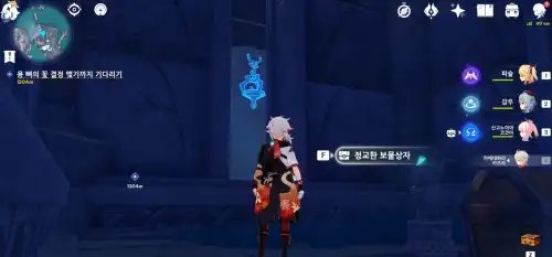 스크린 샷 위치 벽 만지기 해서 문양 활성화 해야함. 문양판 가서 스크린 샷 순서대로 들어가면 가디언 3마리 전투 후 상자 |