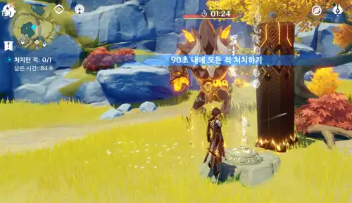아래 사진은 시작지점입니다 // 만약 고대문자 기믹이 없고 두번째고대문자 기믹만 있다면 활성화 해서 바람슬라임이 나와있을 가능성이 큽니다 정확한 위치에 서서 원소시야로 방향을 보고 바람슬라임을 잡으세요 3마리씩 3번 잡아야됩니다 |