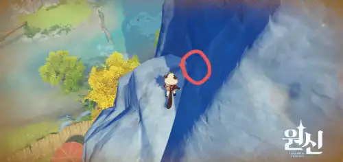 아우타케 들판의 서쪽에 3중 폭포를 마주하고 있는 섬에서, 조금 더 서쪽에 있는 바닷속 |