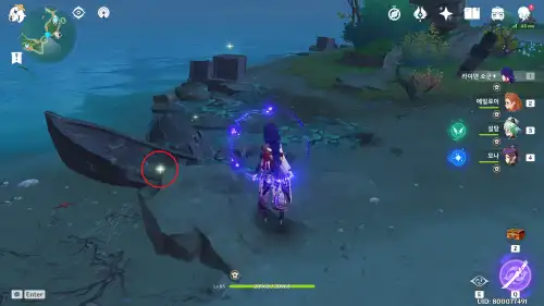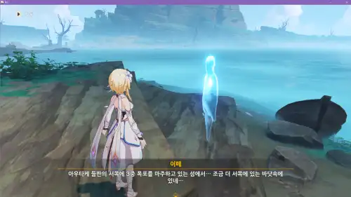 이페 (치라이 신사 워프 옆 낚시터 낚시1 화)만나서 대화 후 오셔야 합니다.(=3중 폭포 앞 섬) |