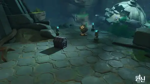 빨간 동그라미 친곳에 계전석 배치하면 상자 등장.계전석 위치는 돔에 하나 물 아래에 2개 |