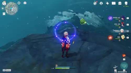활쓸거면 캐릭이 가슴팍까지 물에 잠긴 상태에서 첫번째는 가까우니까 맞추면 되고 두번째는 조준점 아래 화살표가 폭약통에 맞도록, 세번째는 조준점 중앙 동그라미가 폭약통 윗부분에 걸치게 하면 얼추 맞음 |