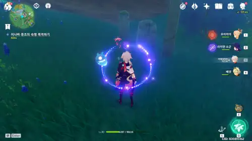 고정된 전극(방출석) 2개에 각각 중계기(계전석) 연결해서 고정된 중계기에 몰아주고 중계기 한번 더 이용하여 고정된 방출석에 연결. 계전석(중계기)들은 전기장막 속에 있는데 근처에 있는 번개 씨앗먹고 들어가면됨, 위상의 문 방향 돌려서 들어가면 장막 근처까지 날아가짐. 회로 활성화 되면 번개정령 갇혀있는 철장 열리고 들어가서 번개정령 따라다니다 보면 번개정령 근처 문으로 들어가서 배위로 올라감. 한번 더 따라가면 번개씨앗 나무 위로 올라가면서 번개씨앗 활성화 되고 t연타해서 신의 눈 먹으면 됨. (밑에 사진첨부함) |