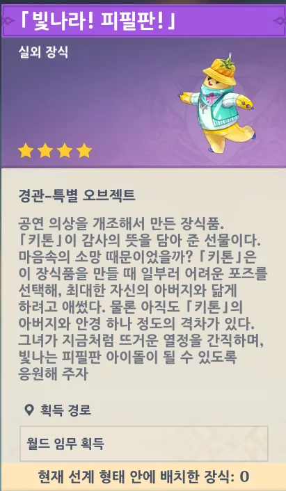월드임무 끝내고 좀 멀리 갔다 다시 오면 키톤이랑 대화하면서 선계장식 줌 |
