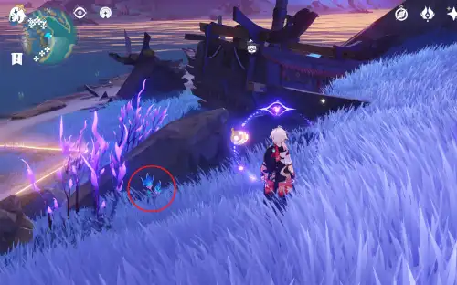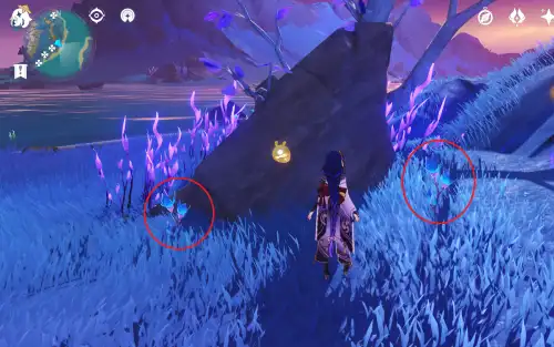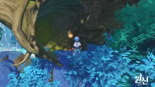 핀 있는 땅에서 폭포쪽으로 바로 아래 나무뿌리쪽에 있음 |